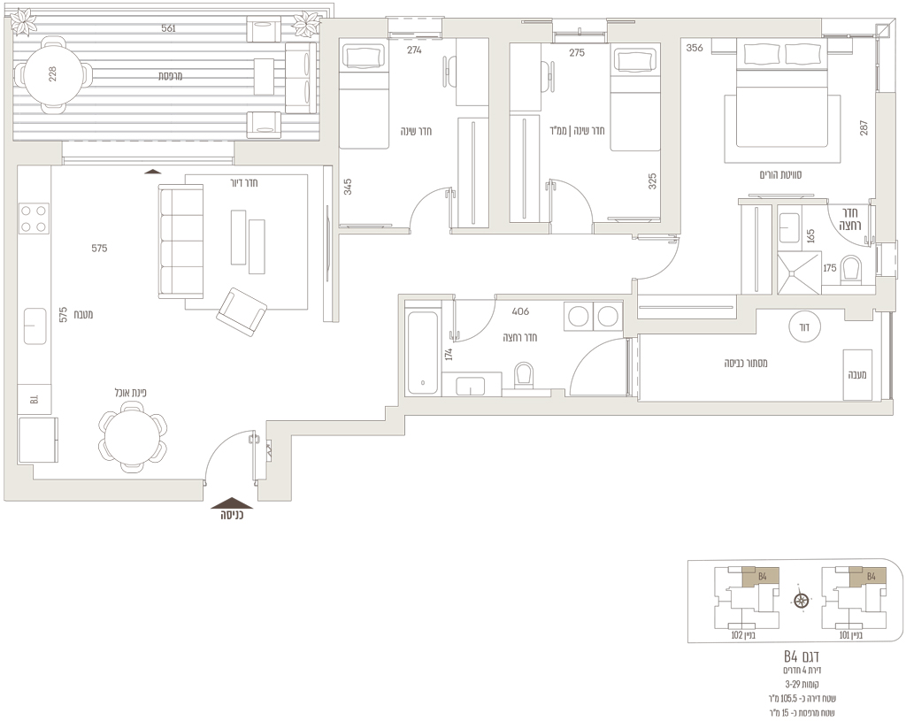 אינטרפוץ 4 דרך בחדר רחצה כללי ובחדר רחצה הורים
