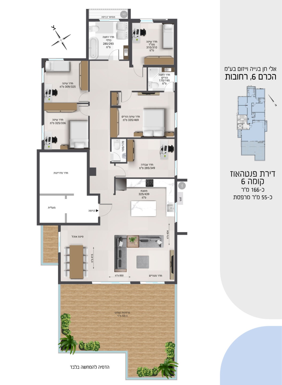 פנטהאוז 6 חדרים, 166 מ"ר